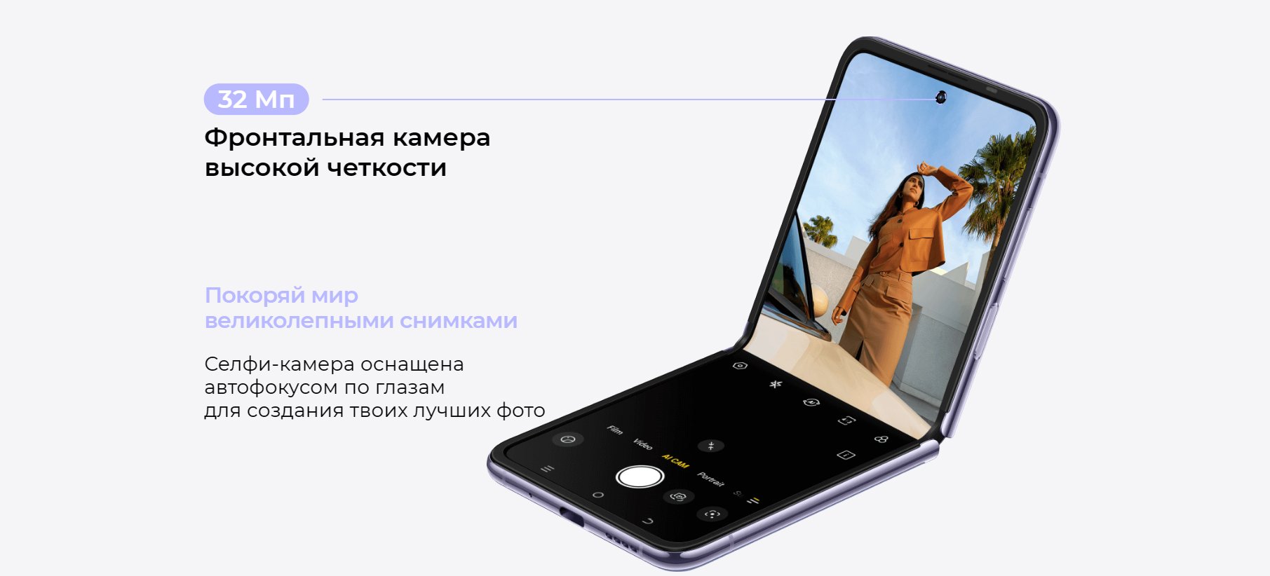 Раскрой и установи смартфон в удобном положении, чтобы с комфортом общаться по видеосвязи, фотографировать, делать селфи и снимать видео