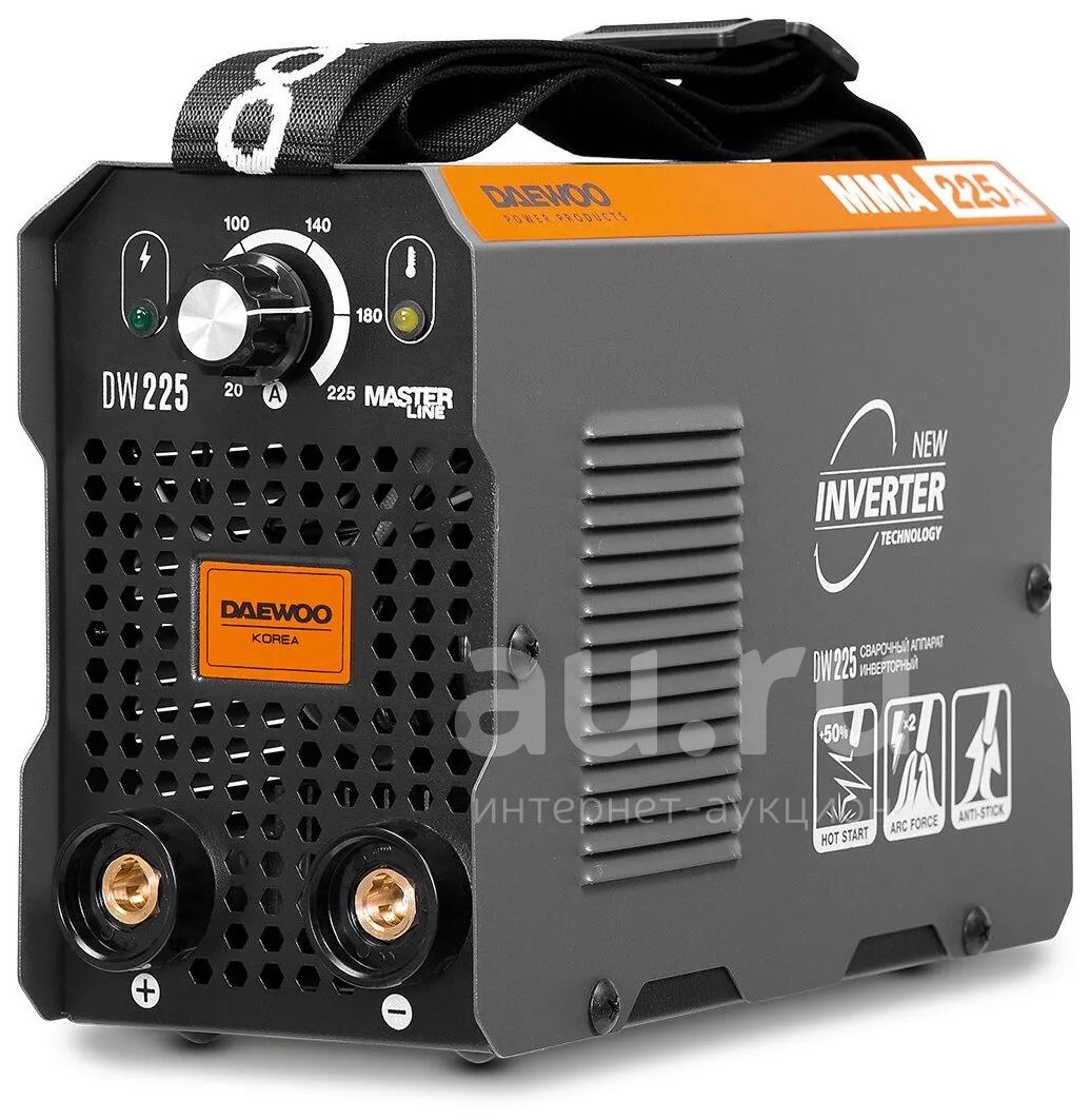 Сварочный аппарат Daewoo DW 225 – удобный аппарат для домашнего использования. Инверторная модель предназначена для ручной сварки ММА, имеет небольшой вес и проста в использовании. В конструкции предусмотрены IGBT биполярные транзисторы, которые значительно упрощают работу.