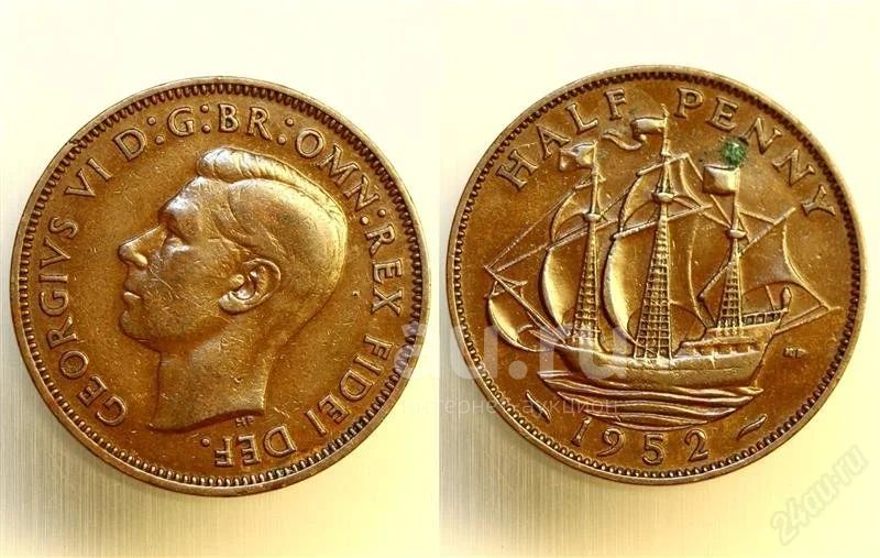 1/2 пенни 1952 год Великобритания