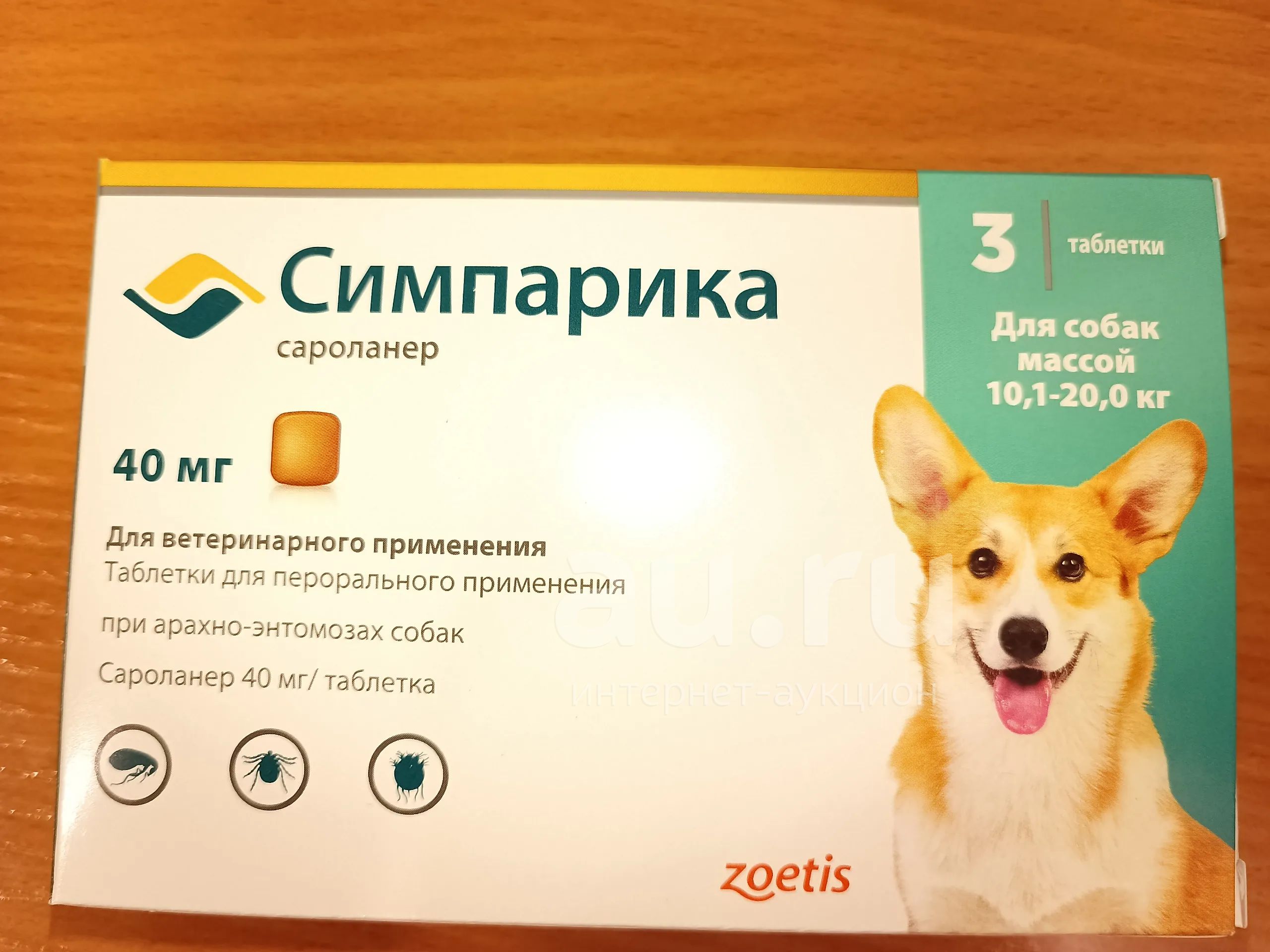 Продам средство от блох и клещей Симпарика 40 мг, для собак массой 10,1-20 кг. 1 упаковка, 3 таблетки. Производство США. Срок годности до 09/2024.