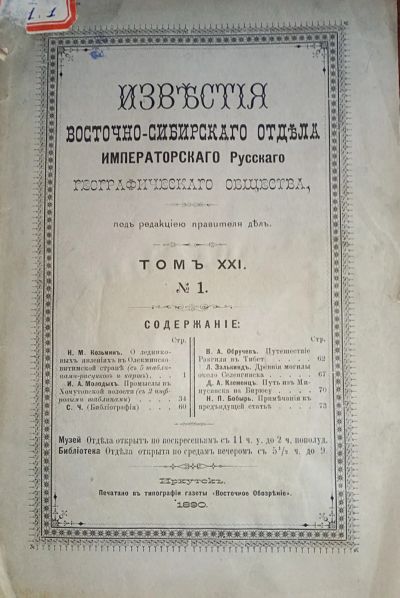 Известия Восточно-Сибирского отдела Императорского русского географического общества, издаваемые Редакционной Комиссией.