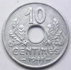 Франция. 10 сантим 1941г. Цинк.