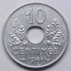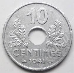 Франция. 10 сантим 1941г. Цинк. Правительство Виши. (5)