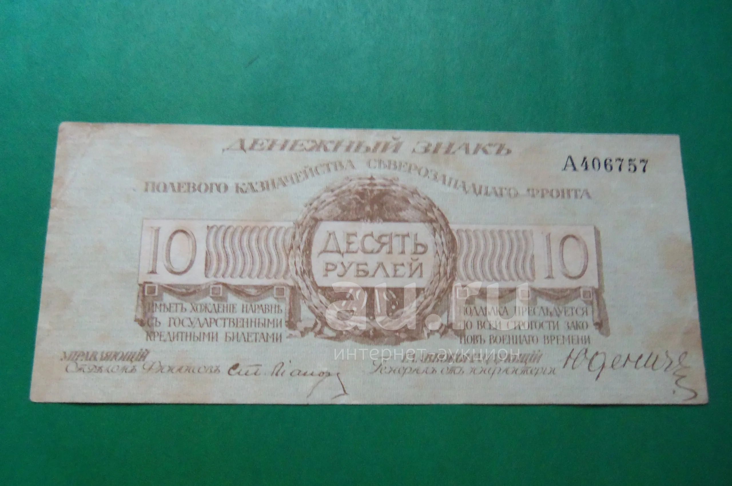 10 рублей 1919 г. Полевое казначейство северозападного фронта.