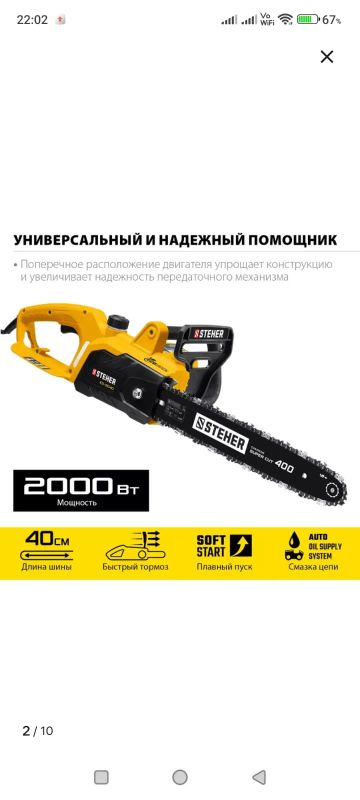 Функции: плавный пуск, электронная защита двигателя, тормоз цепи