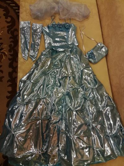 Платье для девочки в пол, пояс на спине завязывается на бант. Верх бархат с парчой, юбка - шелк и парча. Разм. 38 (на 7-10 лет). Одевали 1 раз на бал. Перед покупкой можно померитЬ.только перчаток нет,ЕСТЬ ПОДЪЮБНИК ПОД ПЛАТЬЕ.