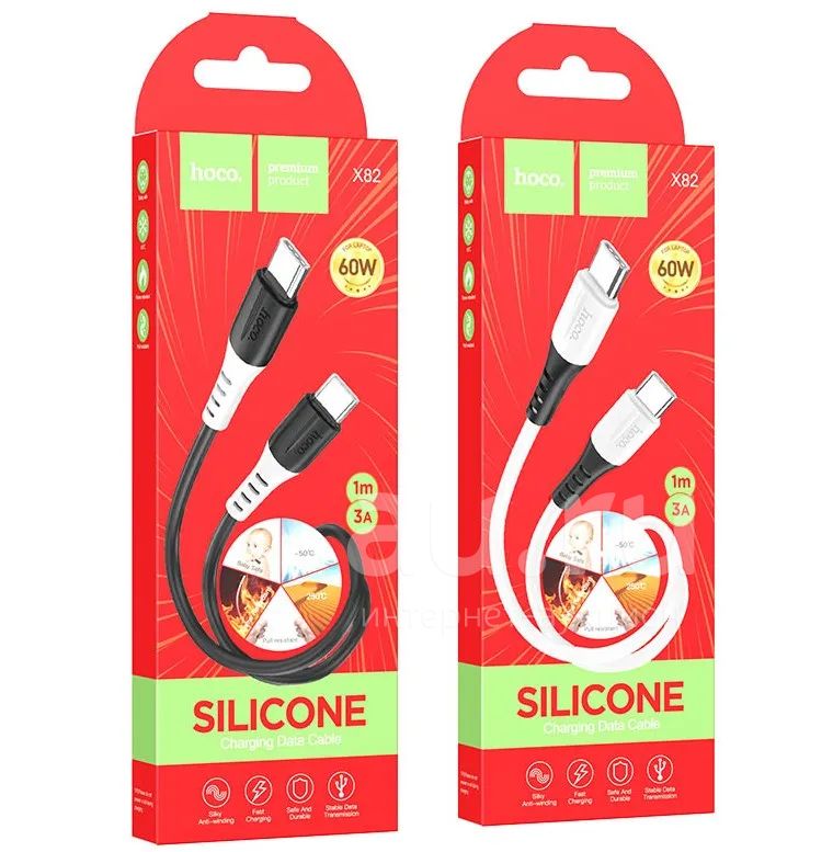 Кабель Type-C на Type-C Hoco X82 силикон 1 метр в коробке 60W