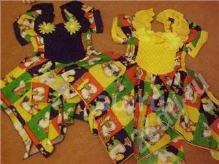 Два платья: желтое и синее. На 1-1,5 года. Яркие расцветки, игривый фасон. Подол ввиде квадрата, поэтому при сборке висят уголки