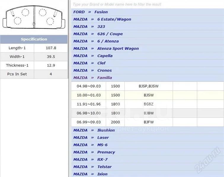 Тормозные колодки задние на Mazda Familia