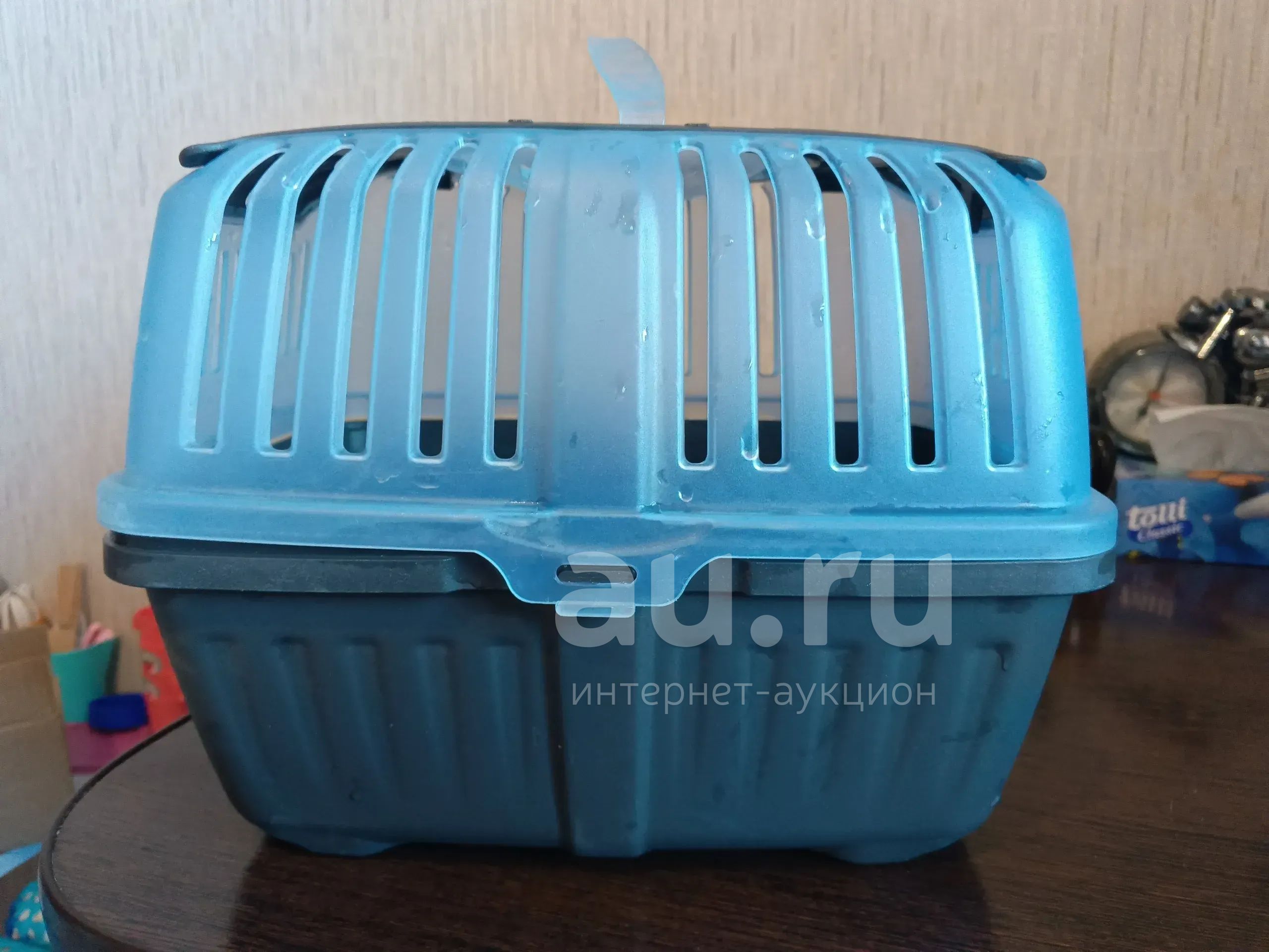 Переноска для небольших животных. Верхняя ручка не держится, все остальное целое. По последней ставке, без претензий.