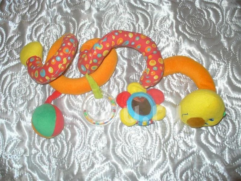 можно на кровать, коляску,и т.д.Шуршит,погремушка,зеркальце!