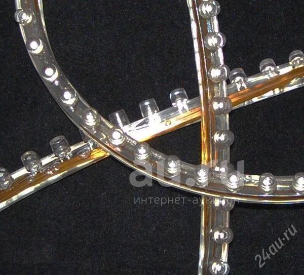 Вся лента залита толстым слоем силикона, который не только полностью изолирует её от внешней среды, но и выдерживает значительные удары. С обеих сторон ленты имеются провода.