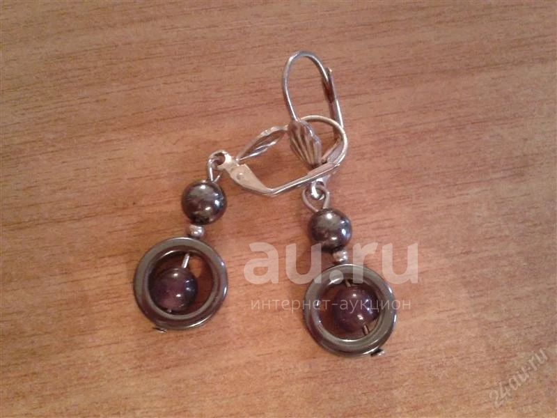 Серьги из гематита и кошачьего глаза,,ручная работа.