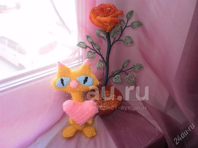 Розочка из чешского бисера (ручная работа) + очень красивый котик, вязаный крючком (ручная работа) очень ждут свою хозяйку!
