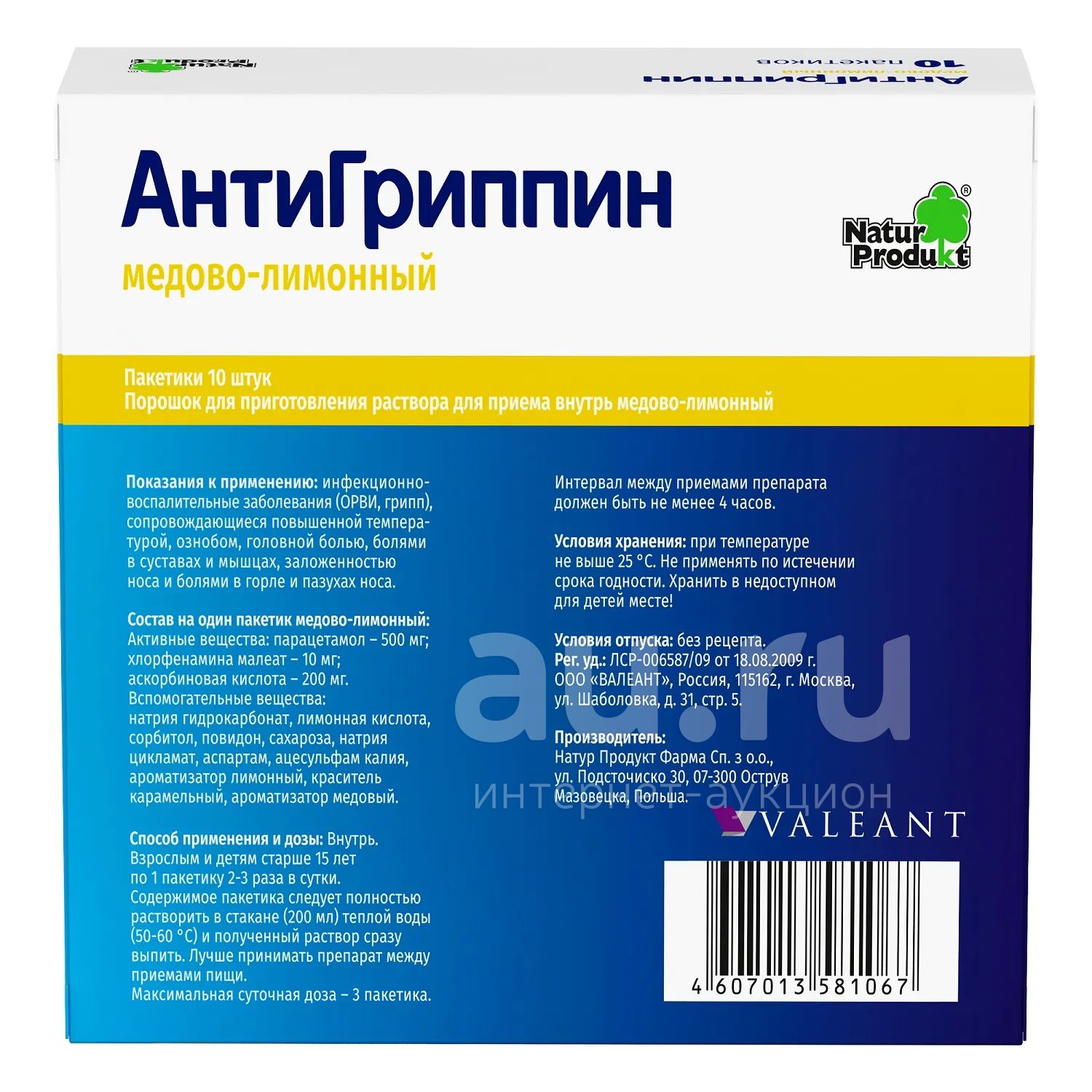 Антигриппин мед лимон пор. для приг.р-ра №10