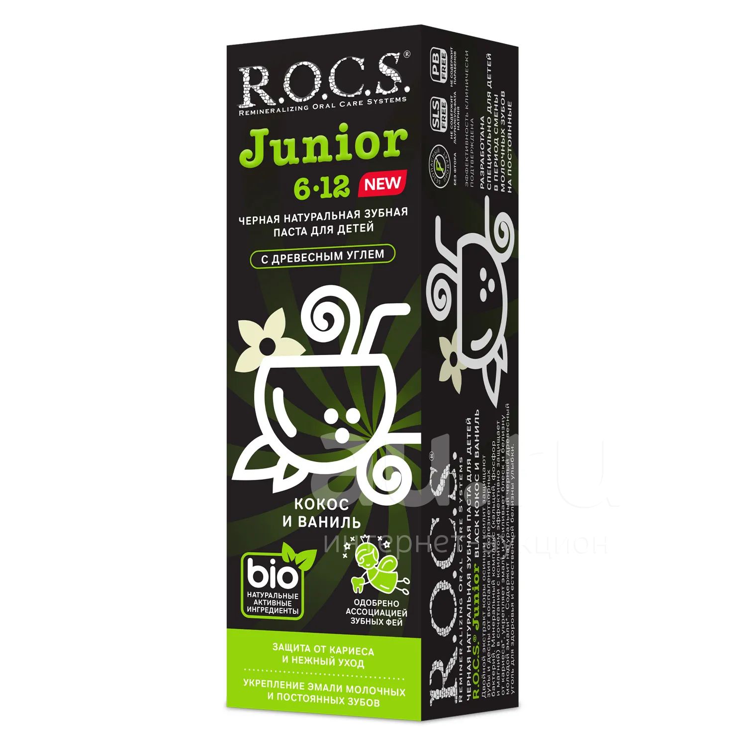 Рокс паста зубная Джуниор Блэк кокос и ваниль черная от 6 до 12 лет 74г