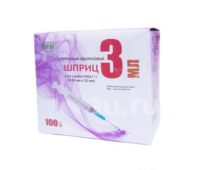 СФМ шприц одноразовый трехкомпонентный 3мл с иглой №100