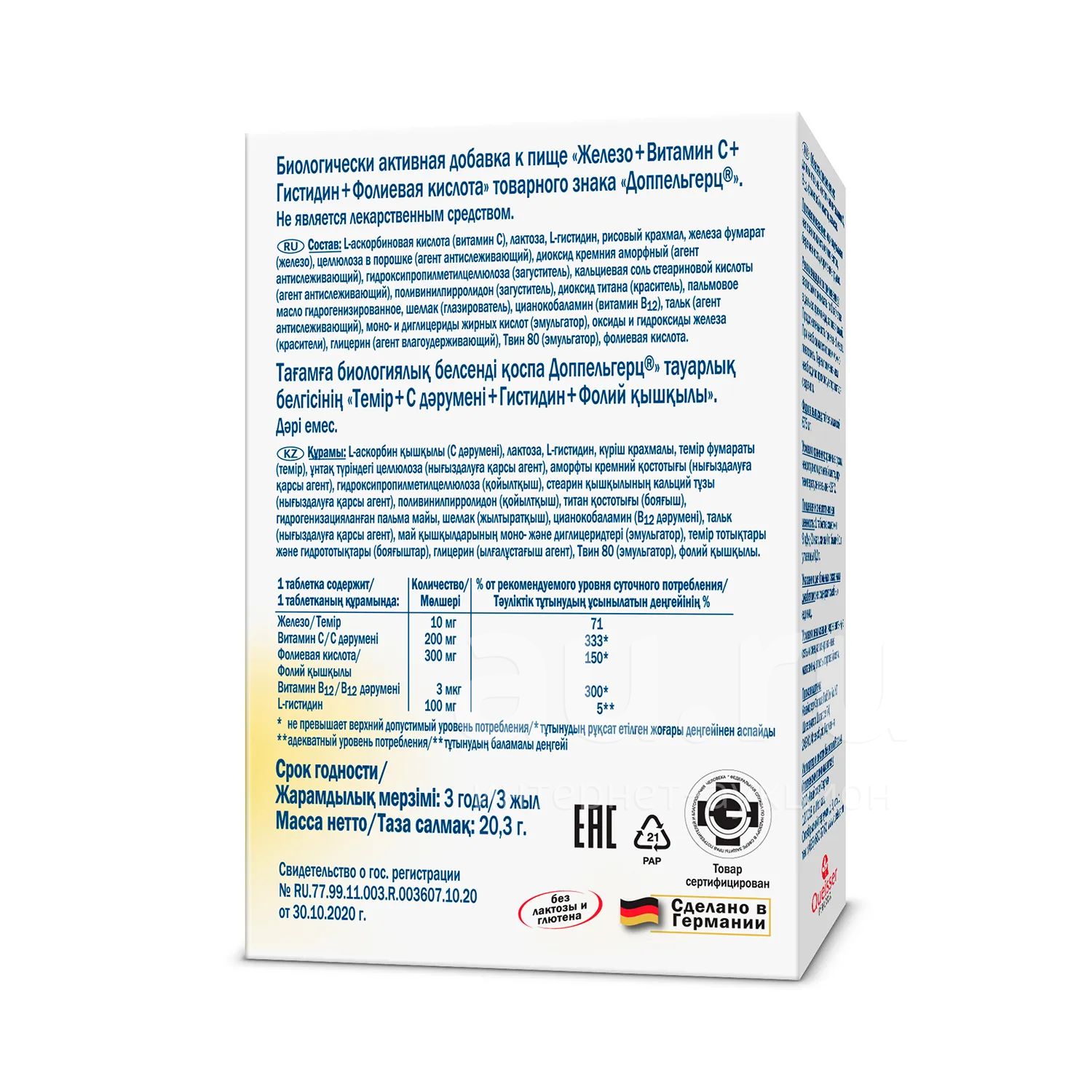 Доппельгерц Актив Железо + Витамин С + Гистидин + Фолиевая кислота таб 675мг №30 БАД