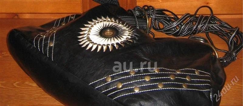 сумка (оригинальная отделка из цветной кожи и желтого металла, застежка – молния, внутри одно отделение с внутренним карманом, снаружи – карман на молнии, материал верха - мягкая искусственная кожа, размер 42 см х 20 см). Дефект внутри – порвана подкладочная ткань, есть потёртость снаружи.