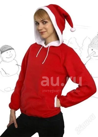 Яркая новогодняя женская толстовка "Санта" красного цвета. Очень тёплая с начёсом.