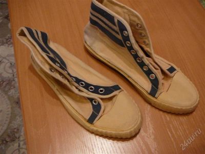 Новые кеды, но от времени слежались и ткань стала не столь эластичной как у новых.Шнурков нет.