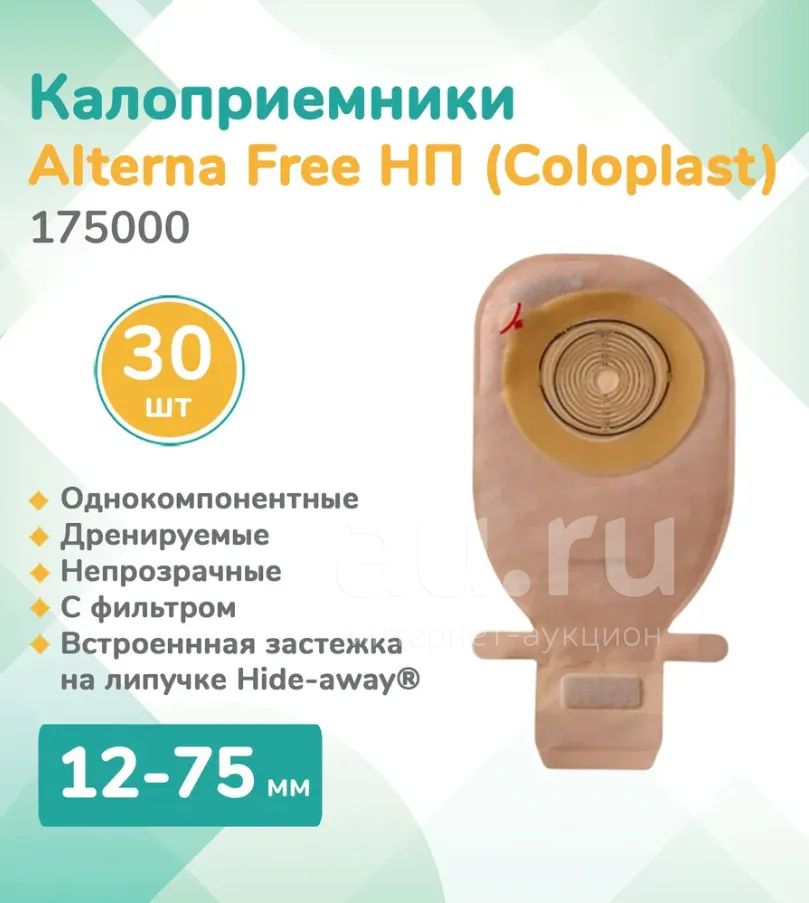 Coloplast Alterna Free 175000 Калоприемники дренируемые с фильтром 30 шт. однокомпонентные открытые со встроенными плоскими пластинами непрозрачные, вырезаемое отверстие 12-75мм.