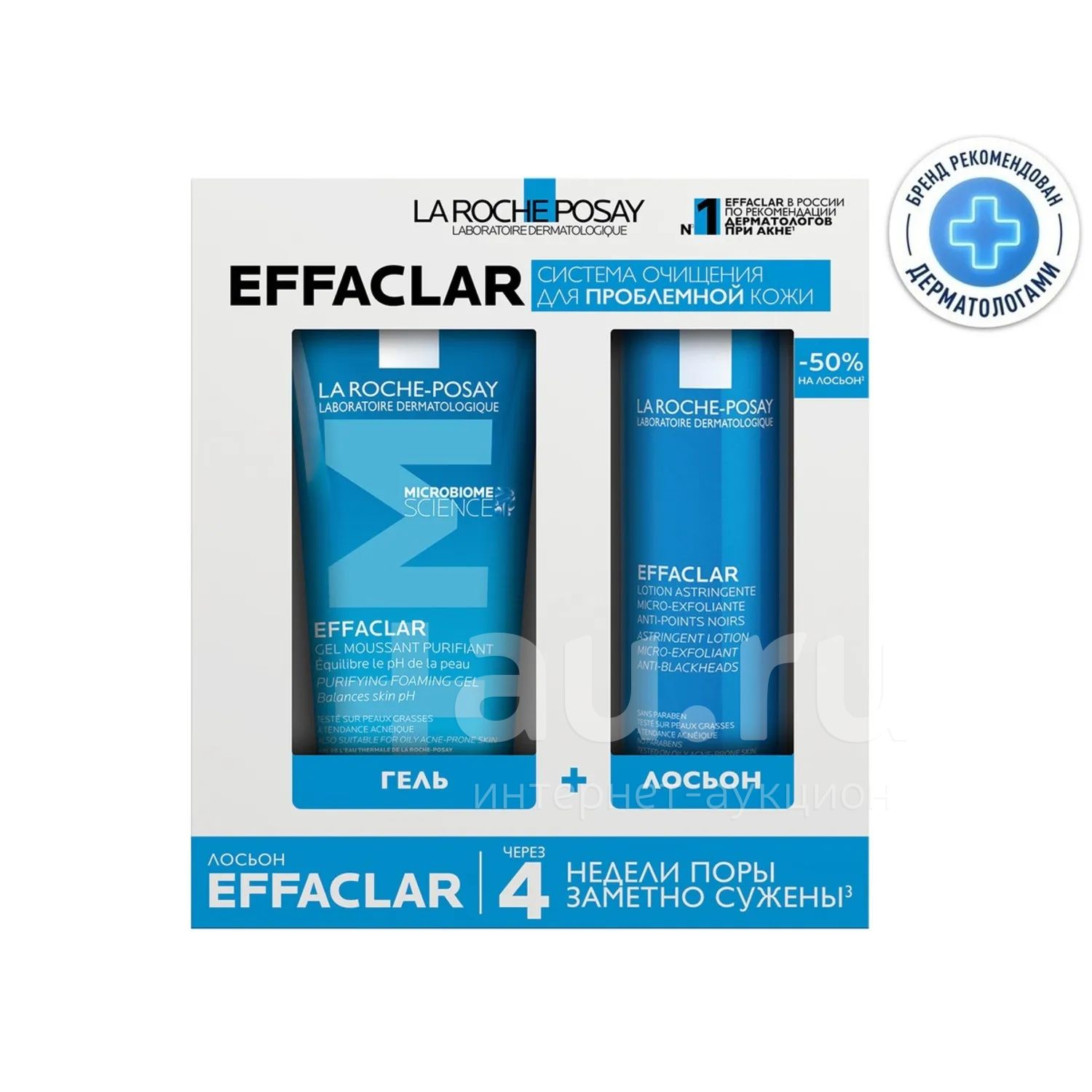 Ля Рош-Позе Эфаклар набор лосьон сужающий поры 200мл+гель очищающий 200мл со скидкой -50%