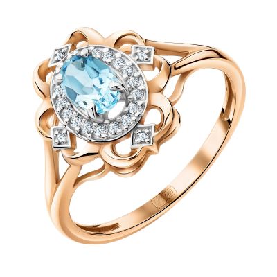 155 270руб.Золотое кольцо с топазом Sky и бриллиантами