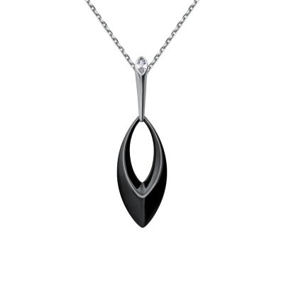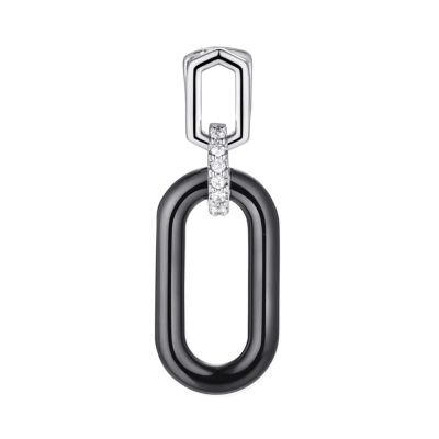 Серебряная подвеска с керамикой и фианитом с родированием