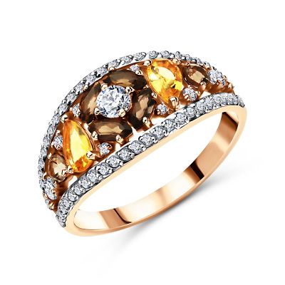 19 490руб.Золотое кольцо с хризолитом и цитрином с фианитами