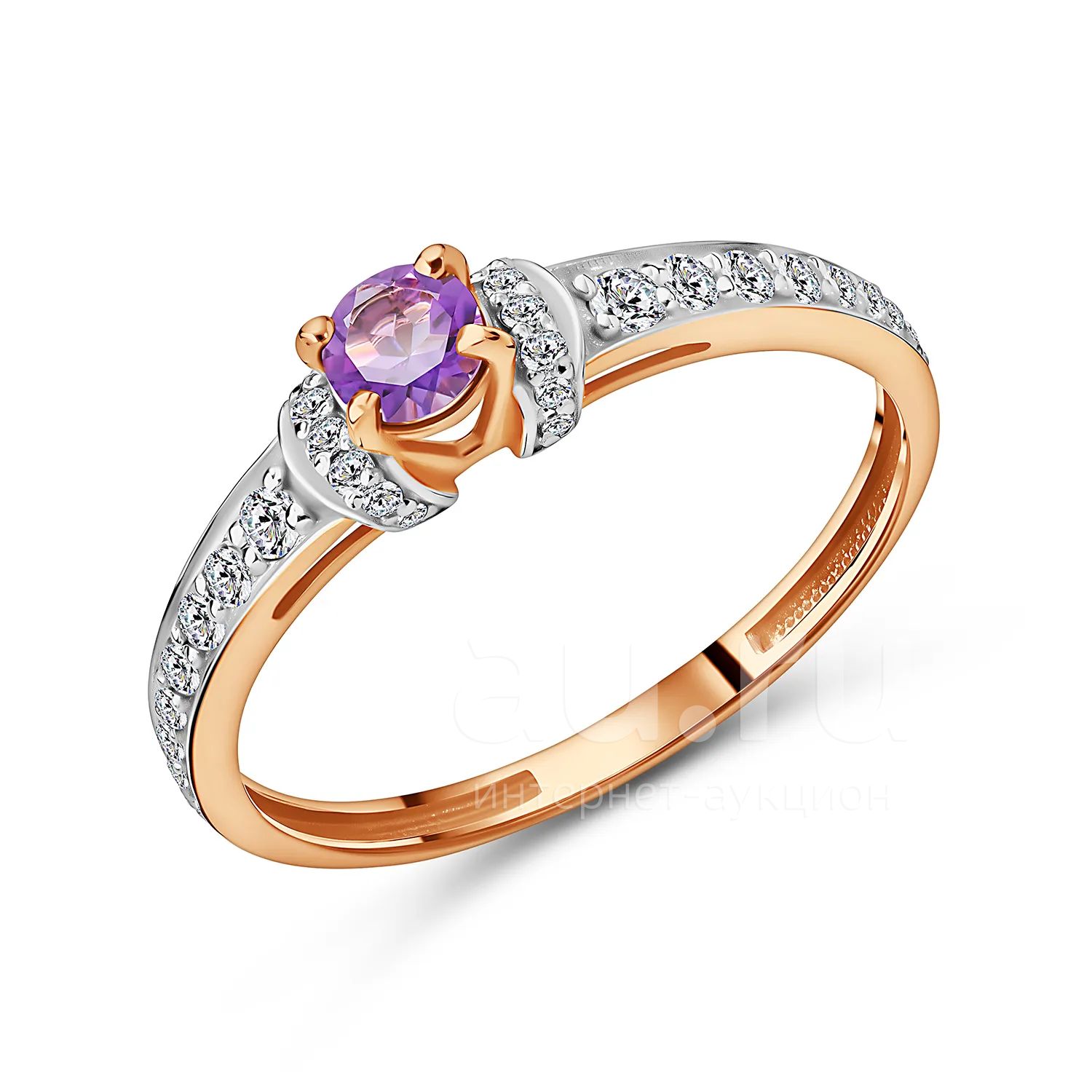 155 270руб.Золотое кольцо с аметистом и фианитами