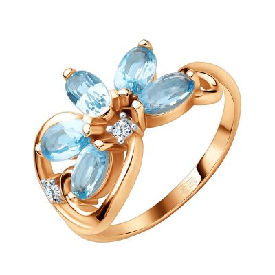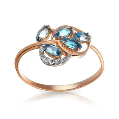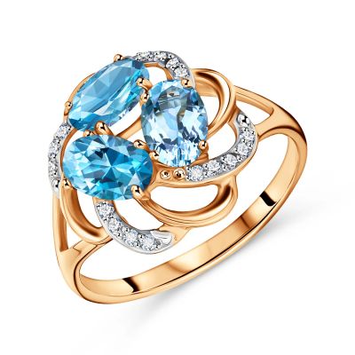 Золотое кольцо с топазами Swiss и фианитами