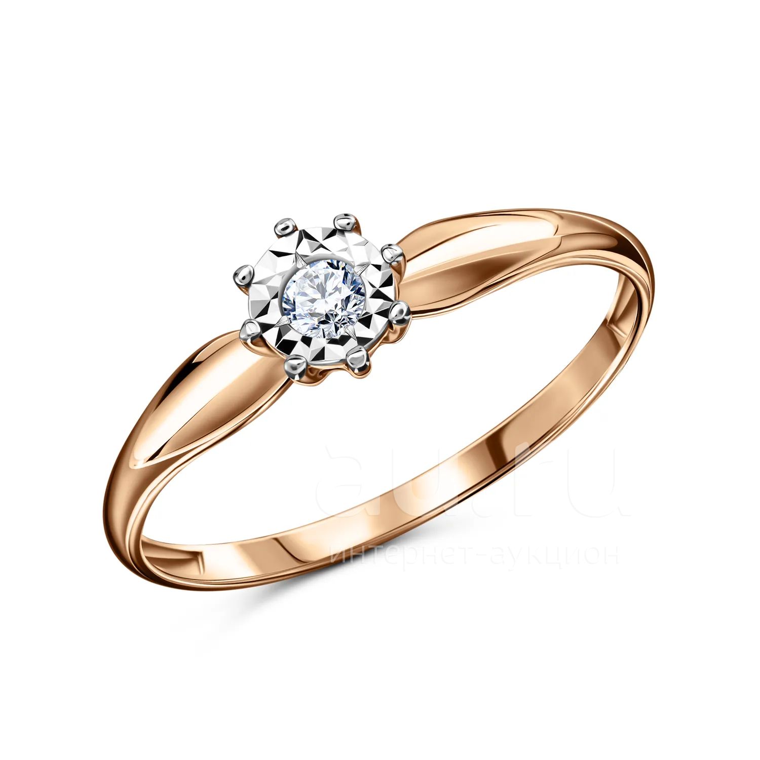 Золотое кольцо с бриллиантом и родированием