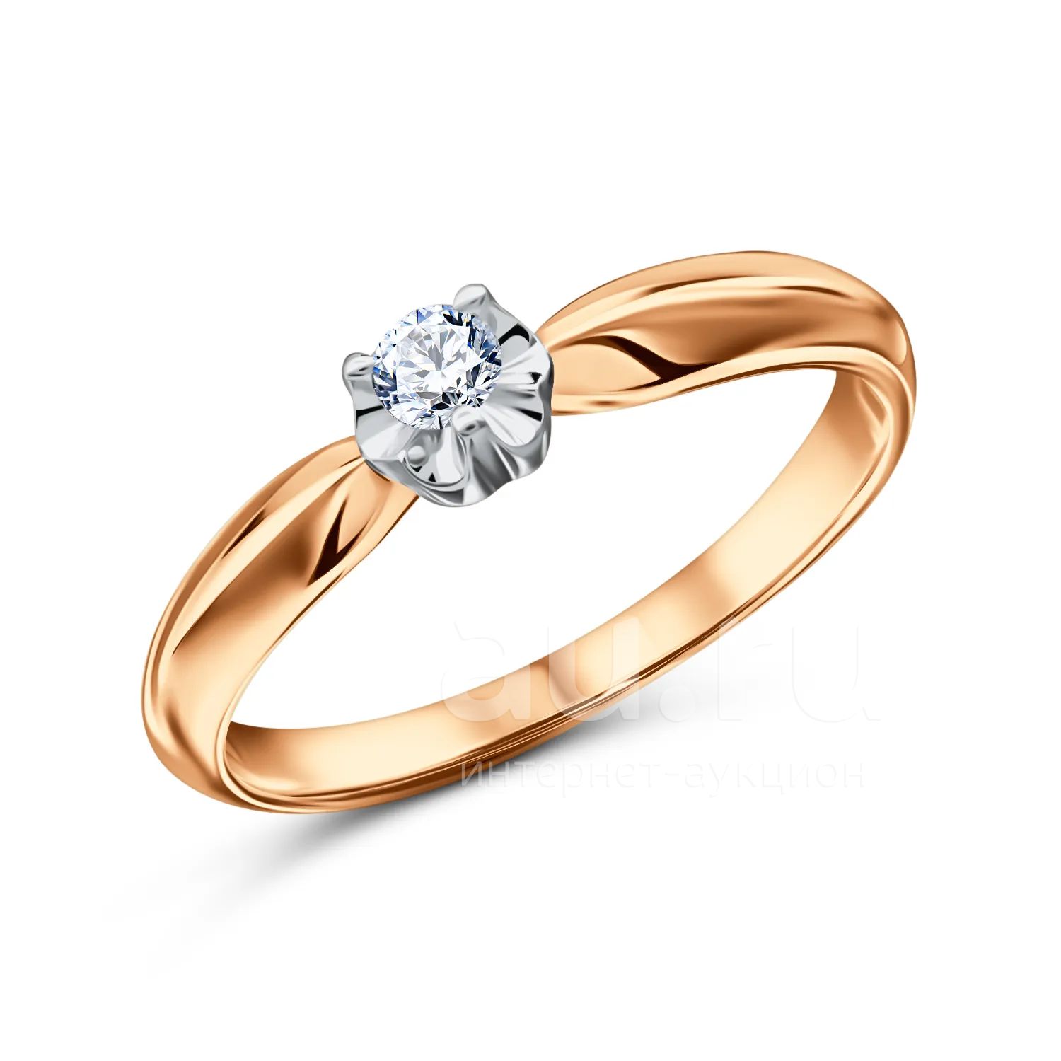 Золотое кольцо с бриллиантом и родированием