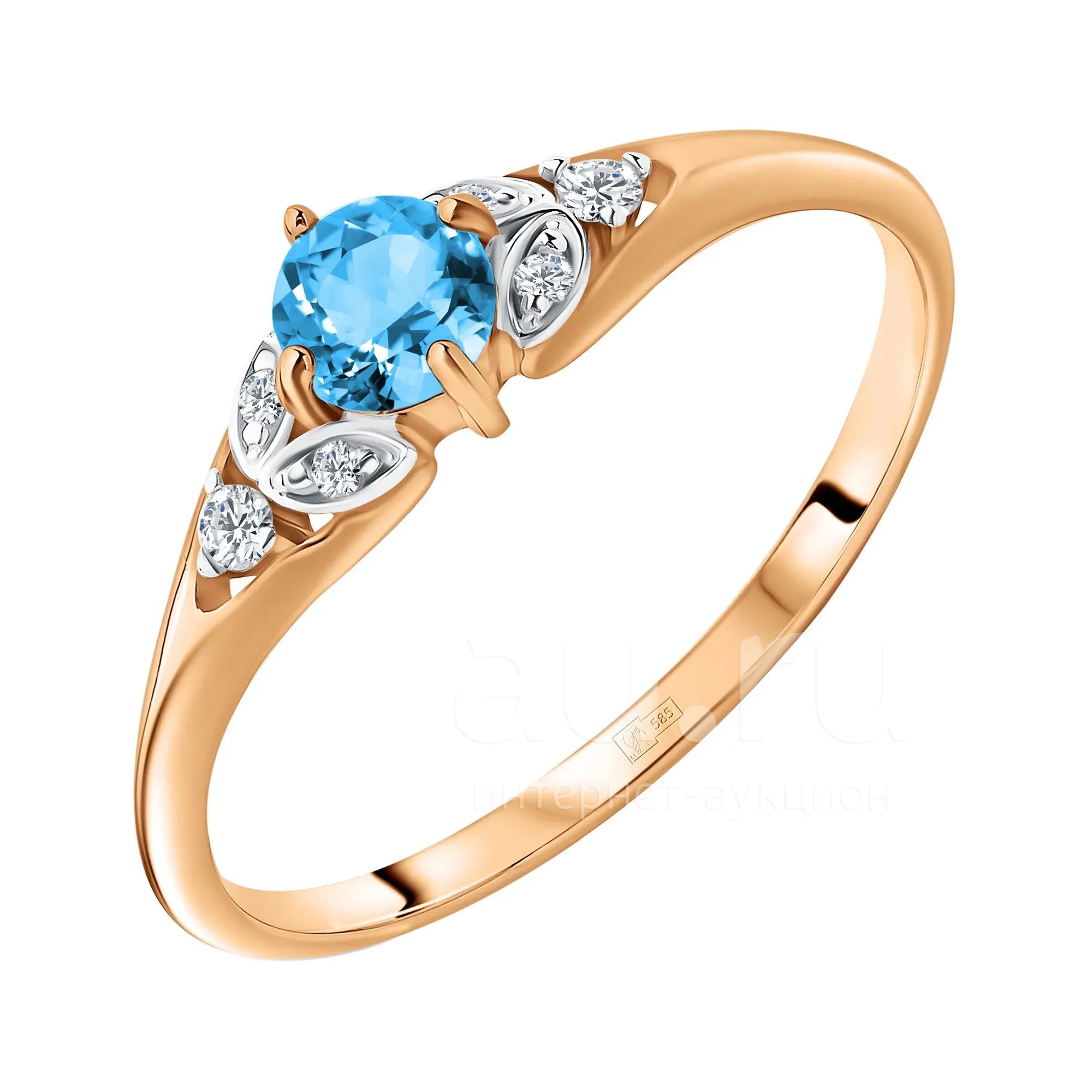24 990руб.Золотое кольцо с топазом Sky и фианитами с родированием