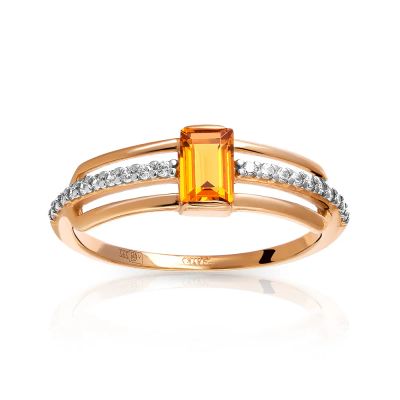 Кольцо из золота с цитрином и фианитами