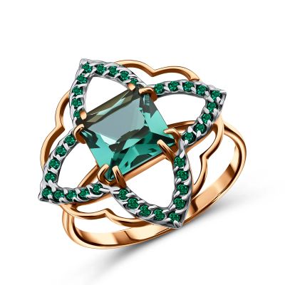 Кольцо из золота с кварцем и фианитами