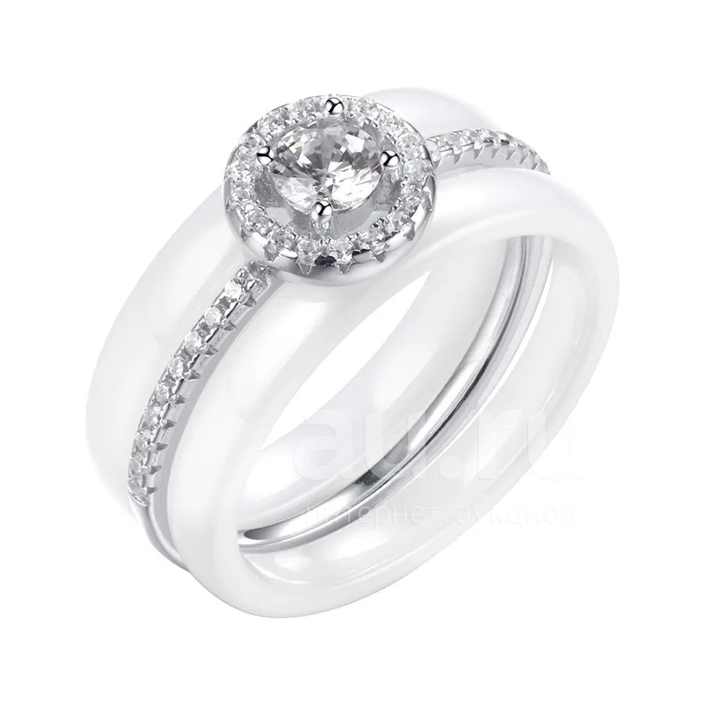 Серебряное кольцо с керамикой и фианитами