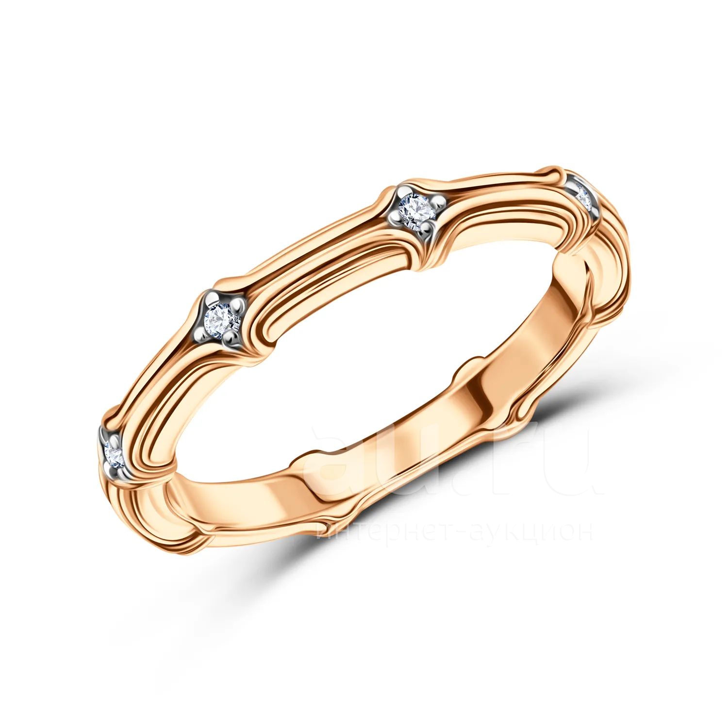 Золотое кольцо с бриллиантами и родированием