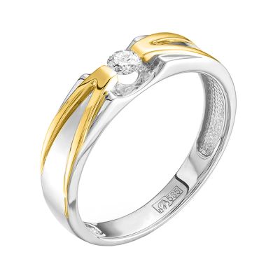 Золотое обручальное кольцо с бриллиантом и родированием