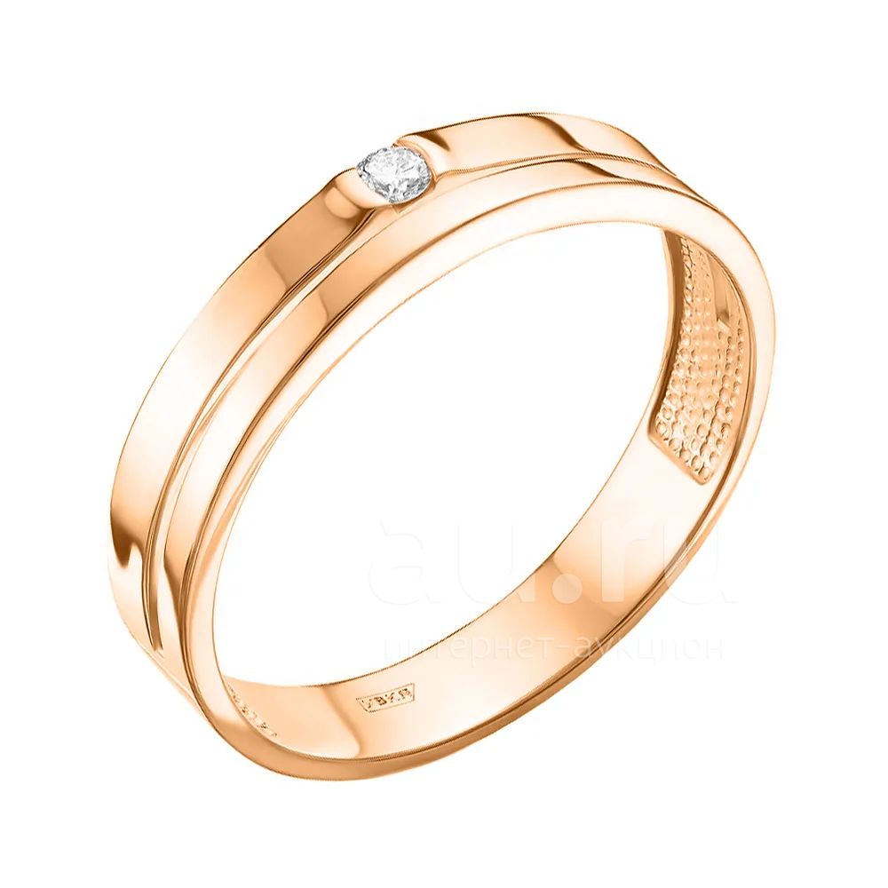 Золотое обручальное кольцо с бриллиантом и родированием