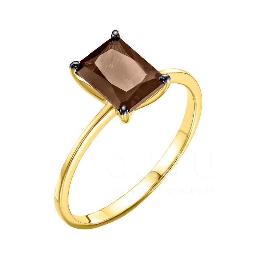 Золотое кольцо с раухтопазом и родированием