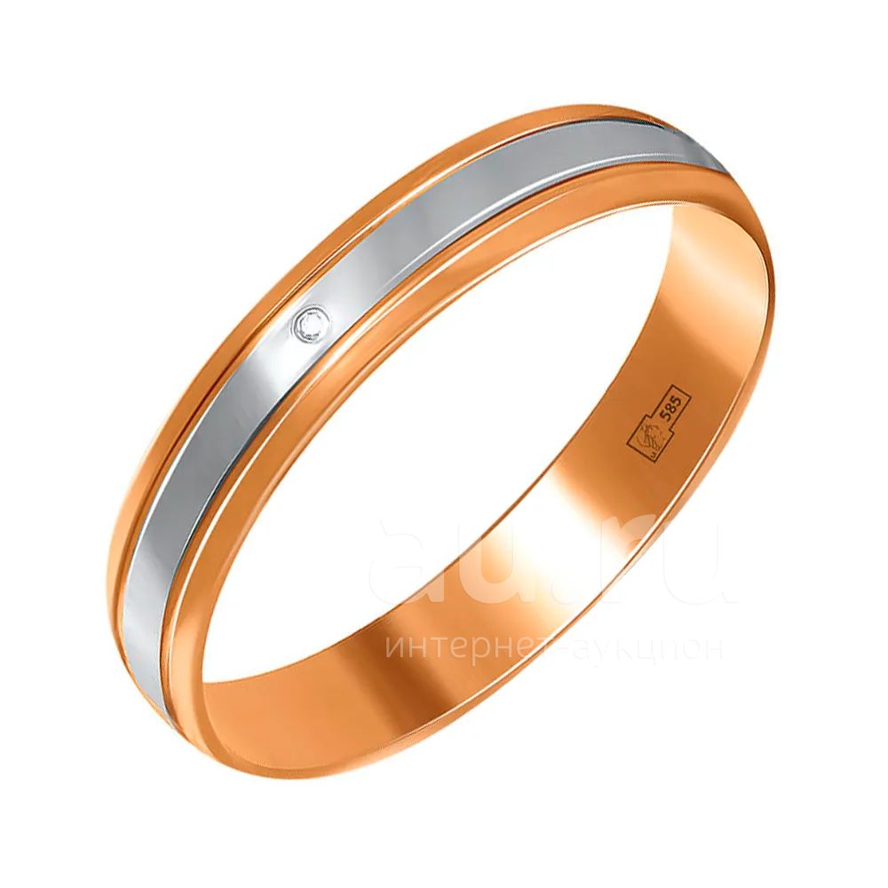 Золотое обручальное кольцо с бриллиантом и родированием