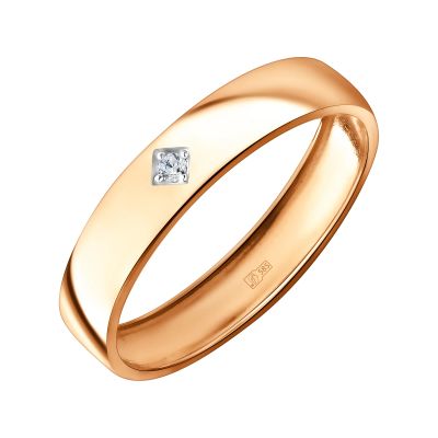 Золотое обручальное кольцо с бриллиантом и родированием
