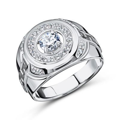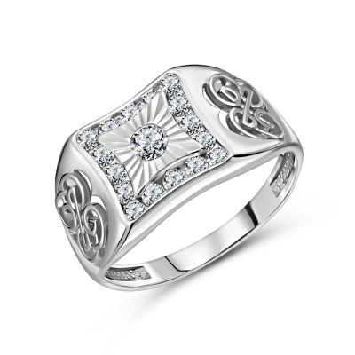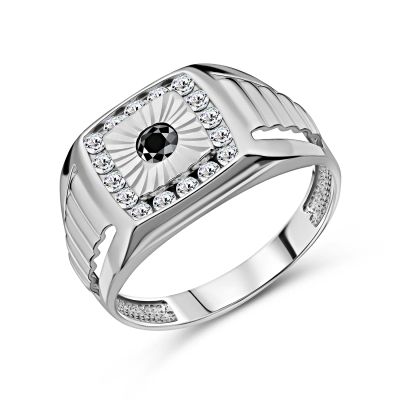 Серебряная печатка с фианитами и родированием