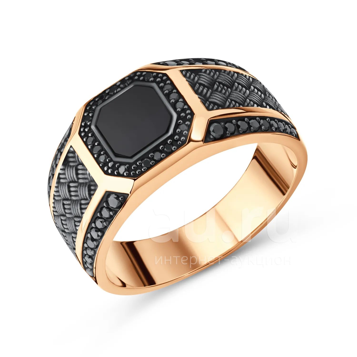 45 070руб.Золотая печатка с ониксом и черными бриллиантами