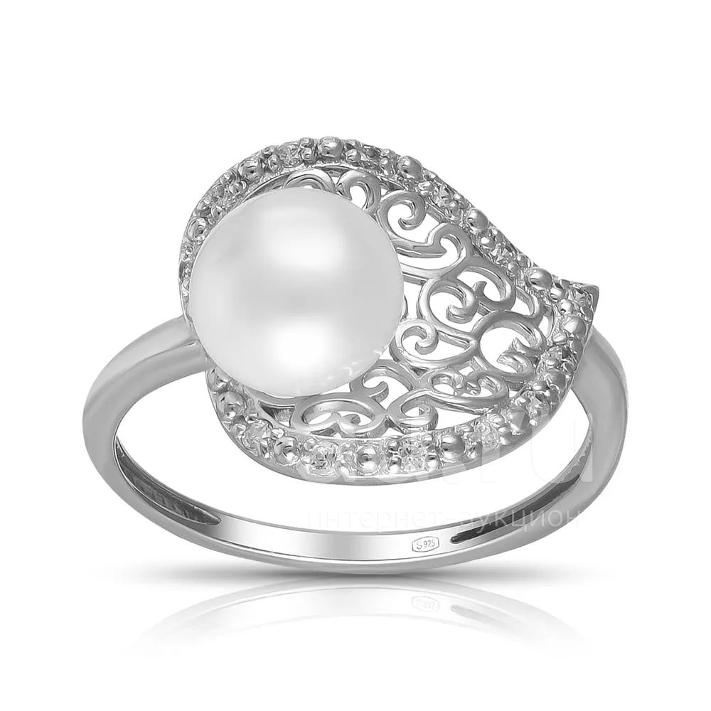 Кольцо из серебра с жемчугом и фианитами