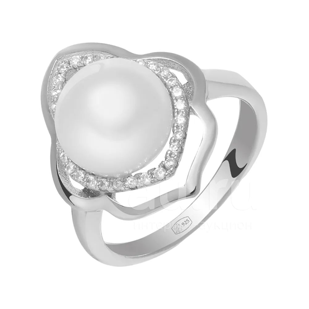 Кольцо из серебра с жемчугом и фианитами