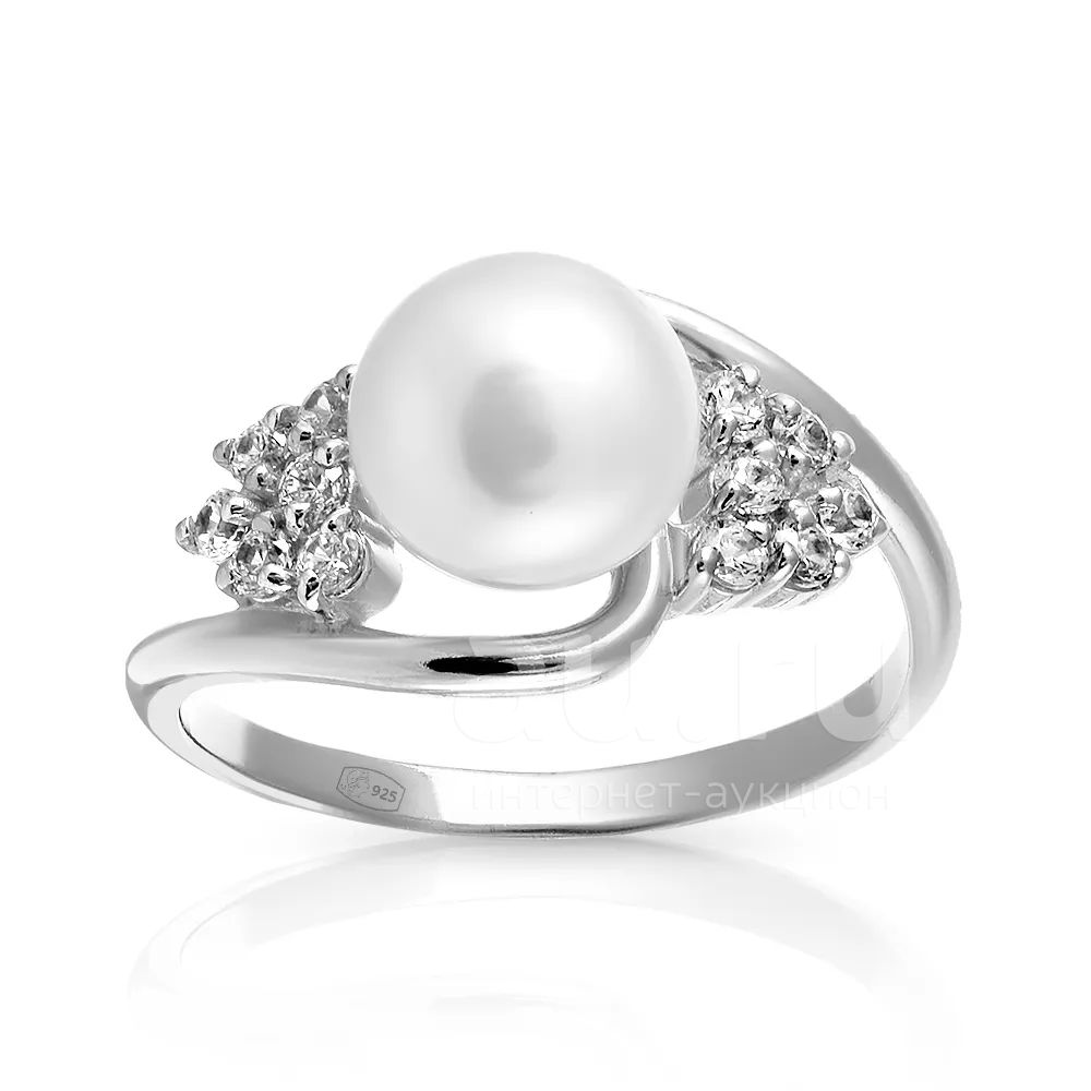 Кольцо из серебра с жемчугом и фианитами