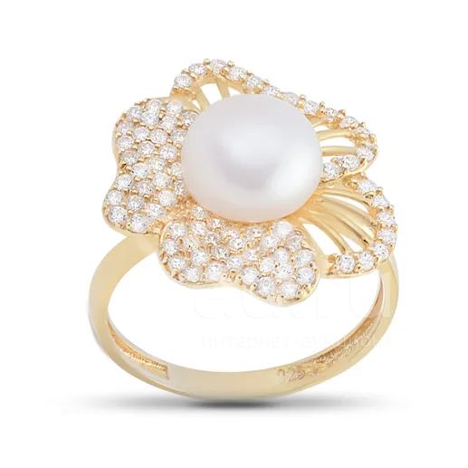 Кольцо из серебра с жемчугом и фианитами